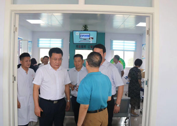 河南省市領(lǐng)導(dǎo)和汝南縣縣委書記等領(lǐng)導(dǎo)參觀指導(dǎo)赴駐馬店汝南縣三門閘醫(yī)院參觀考察國家公共衛(wèi)生智能健康管理中心。